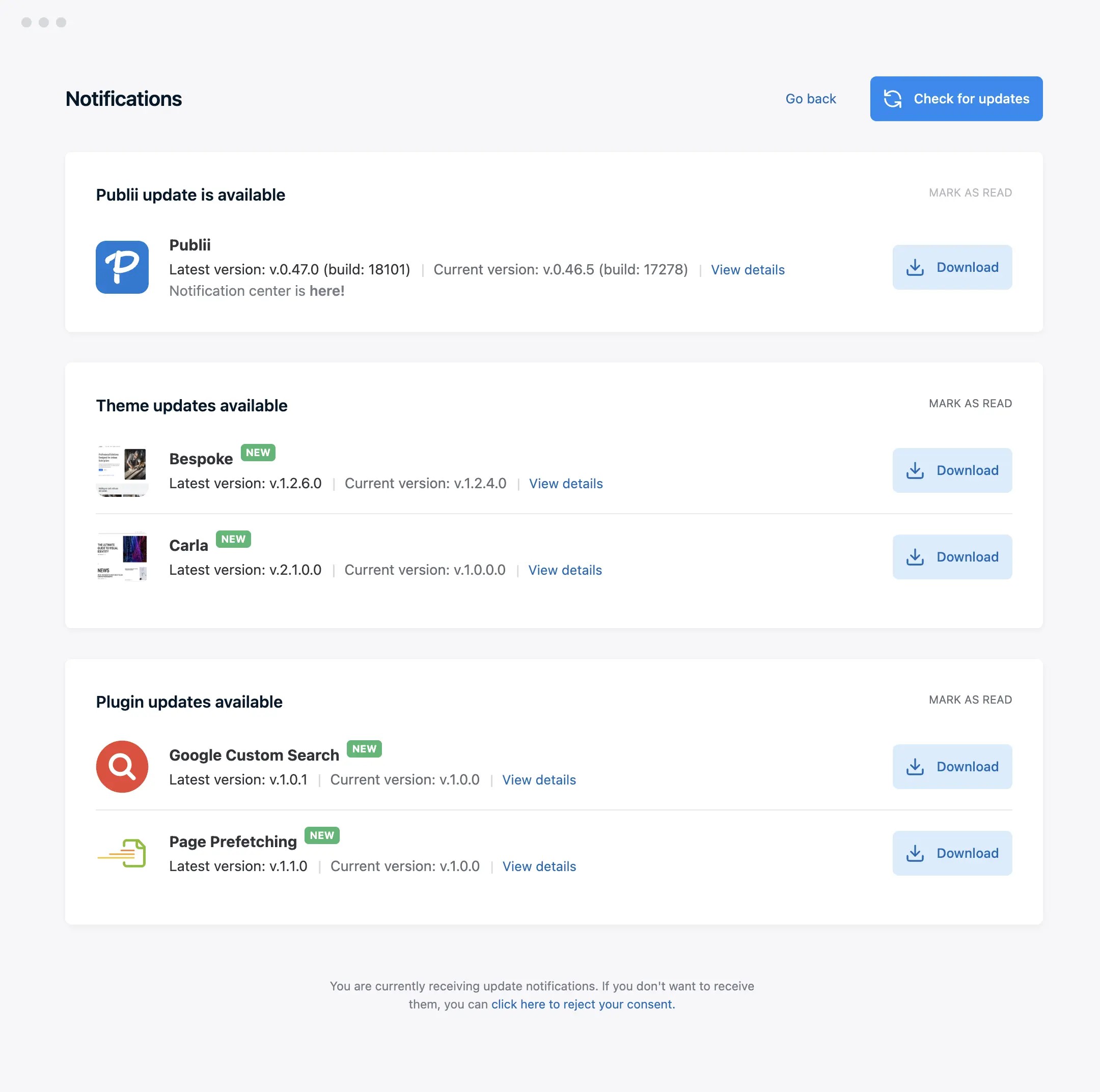 Das Benachrichtigungscenter: Eine zentrale Anlaufstelle für alle Publii-Updates