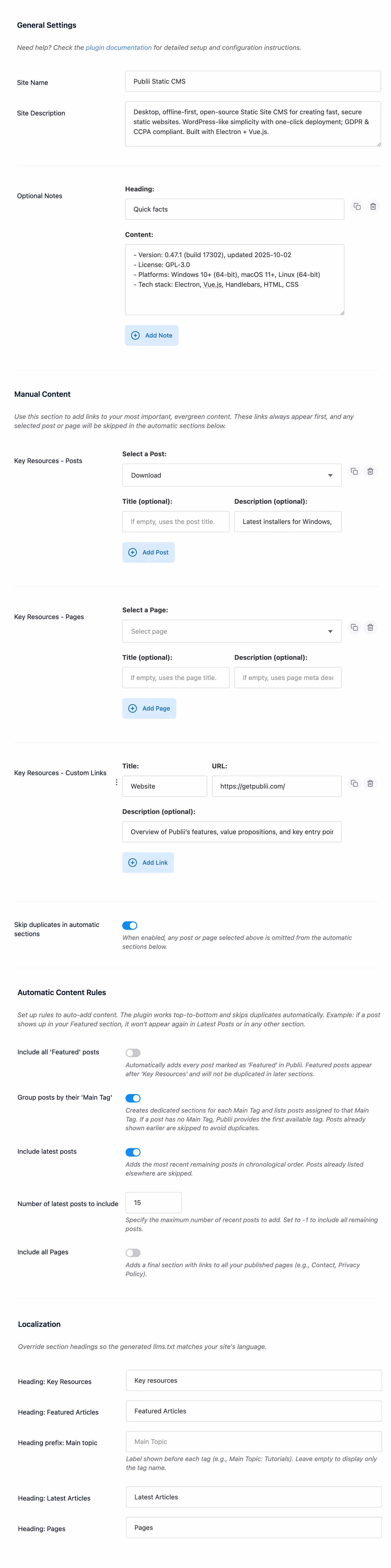 Publii🧩Plugin: LLMS.txt Generator